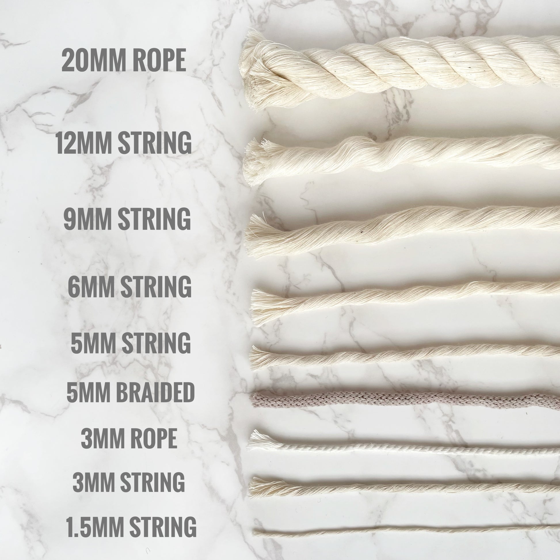 These are 0.5kg coneless rolls of 100% cotton string with a 5mm diameter - perfect for macramé, as well as weaving and many, many more fibre arts and crafts! 0.5kg rolls are approximately 95m of string. Also available by the meter here too!