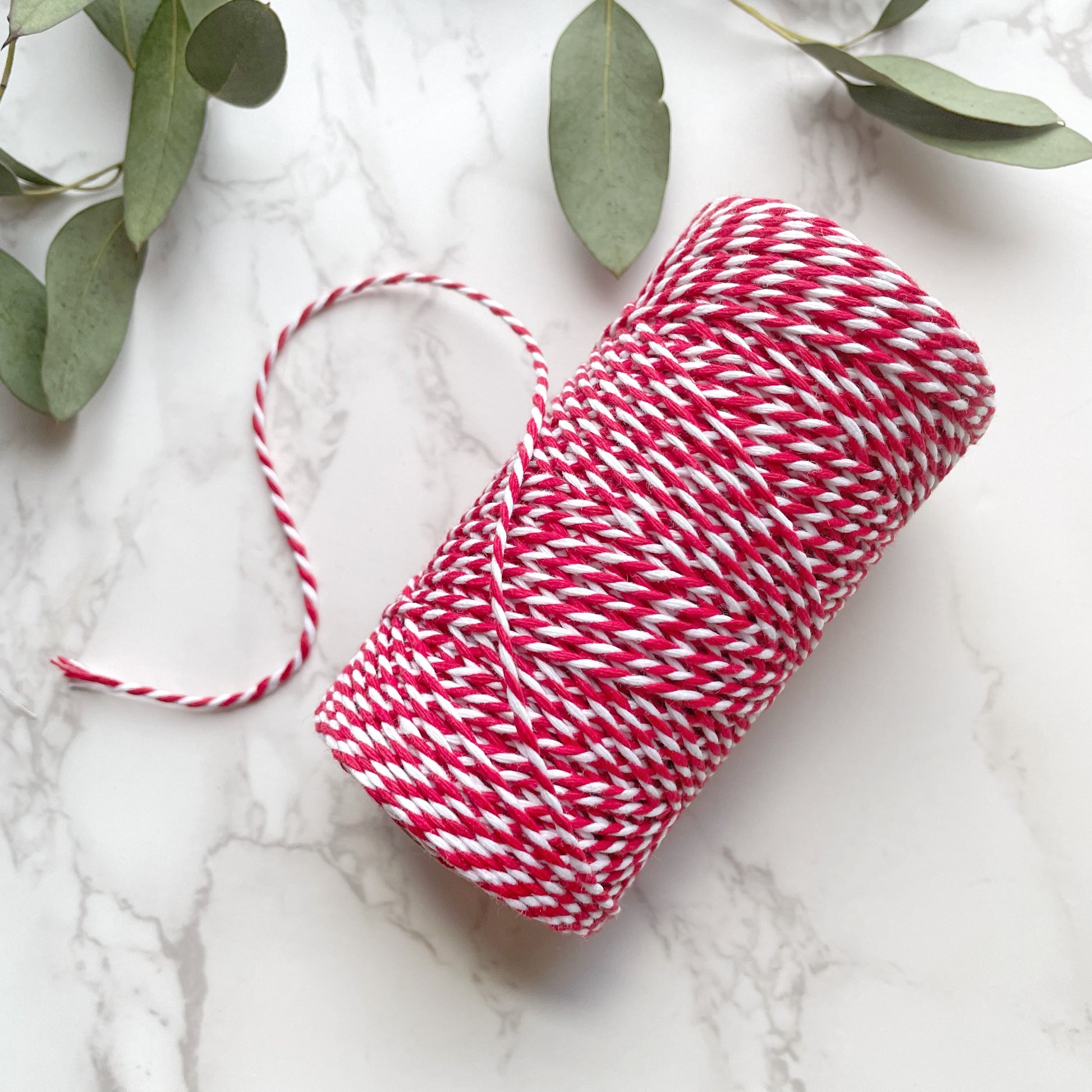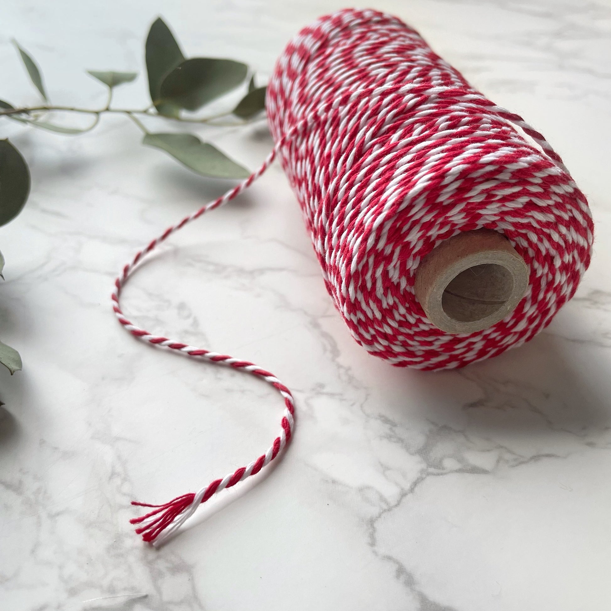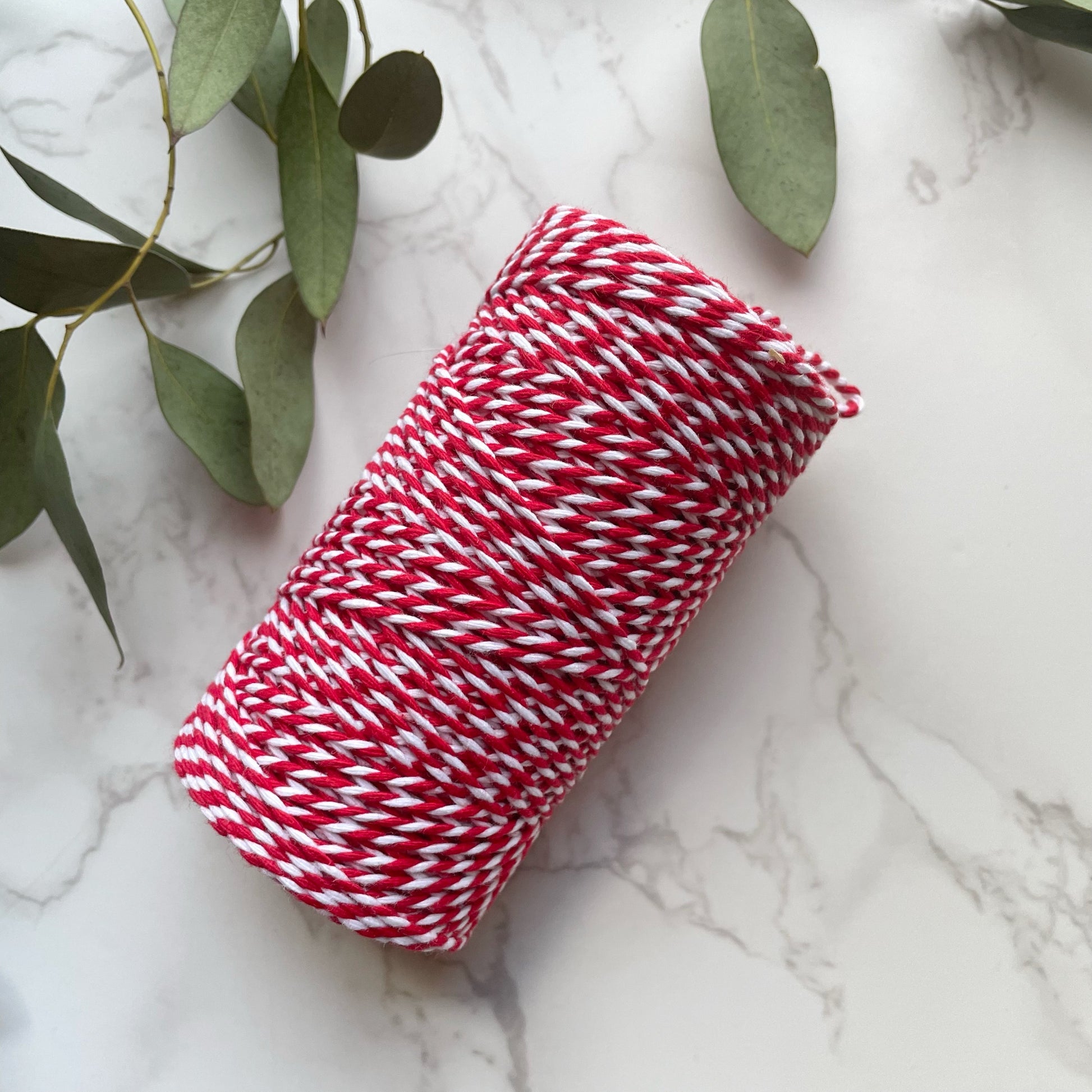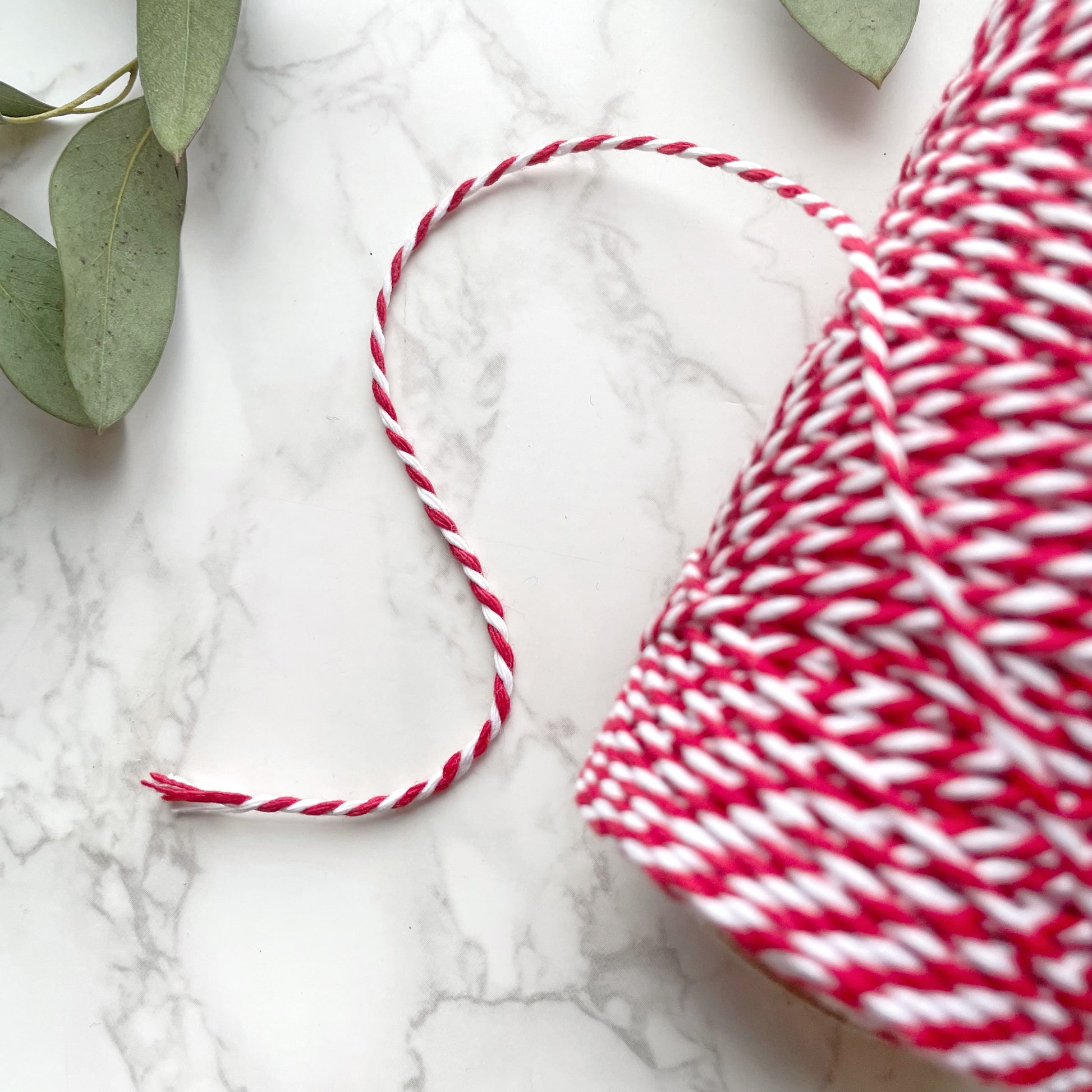 Candy cane cotton twine in 100 meter spools! The thickness of this twine is approximately 1.5mm.