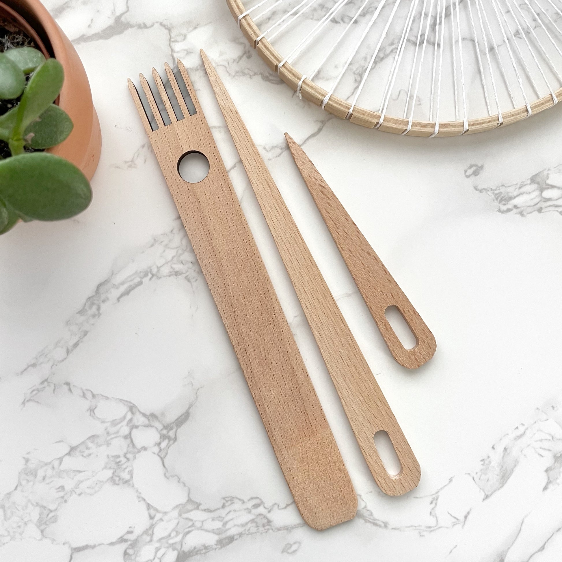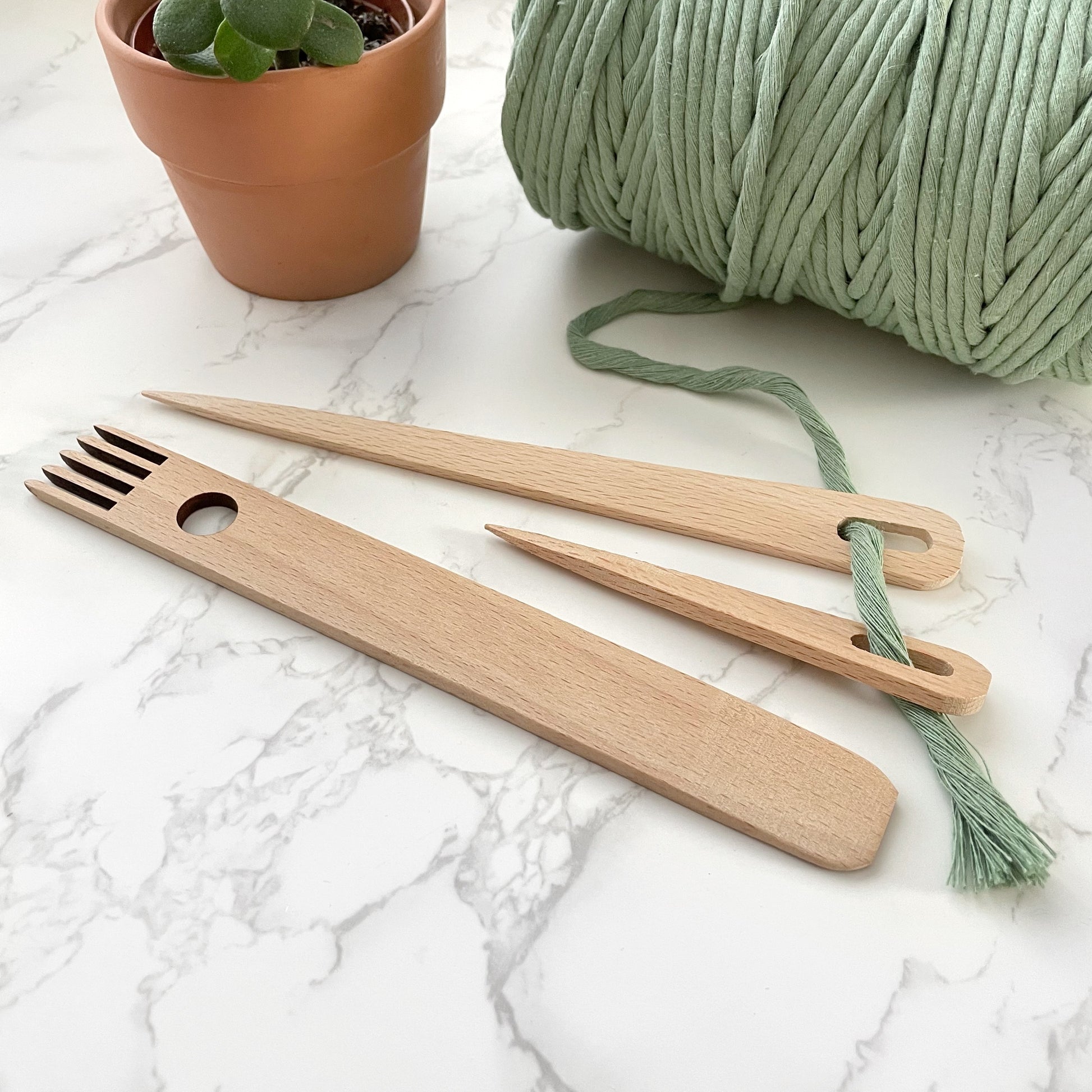 The perfect little weaving tools set, to get you started with weaving on a frame loom. This set would be an ideal add-on to the purchase of any of the weaving looms or round weaving hoops.