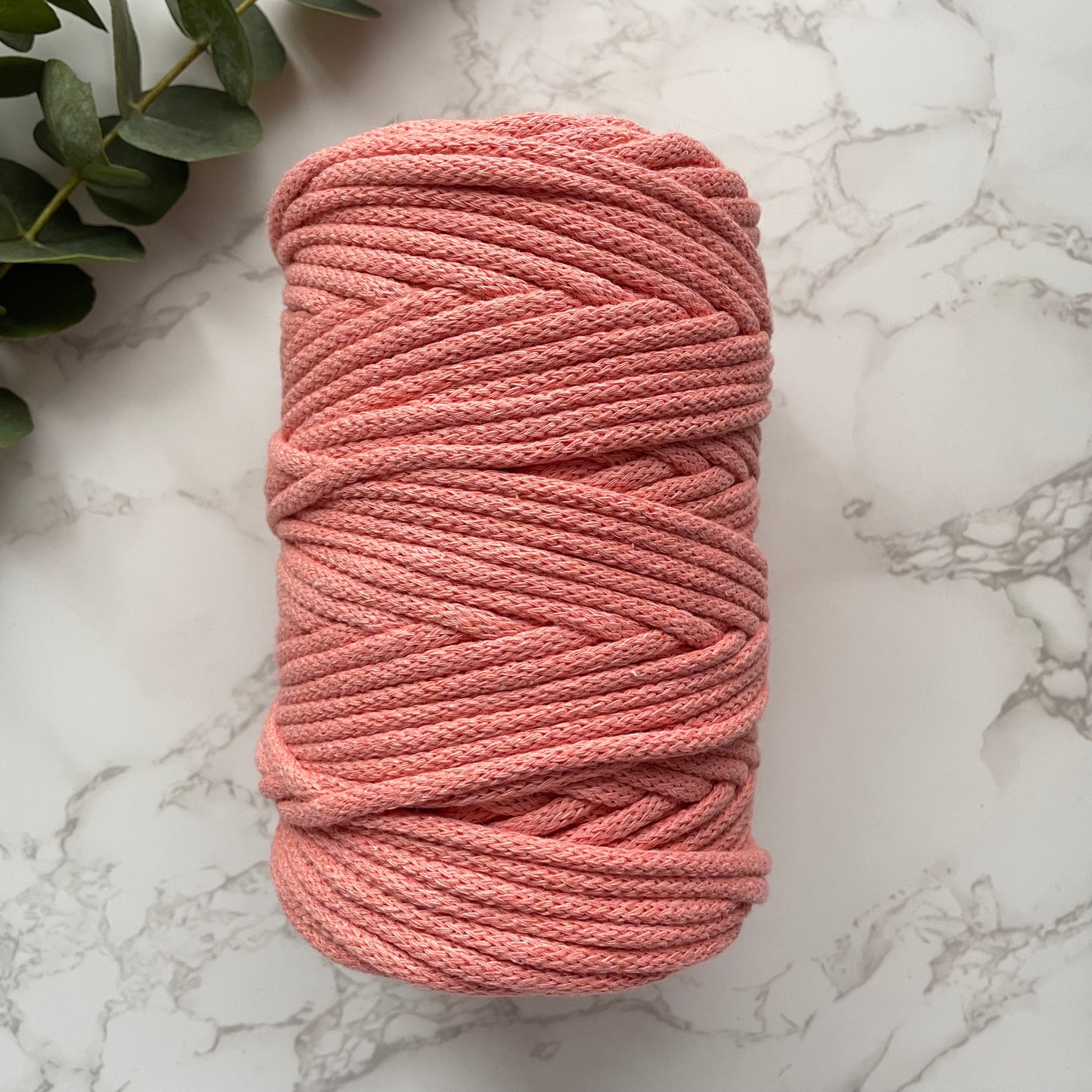 100% recycled cotton, braided cord with a 5mm diameter - perfect for macrame crafts, as well as weaving and wrapping those hoops for warping! 100m is approximately 0.5-0.6kg of cord.