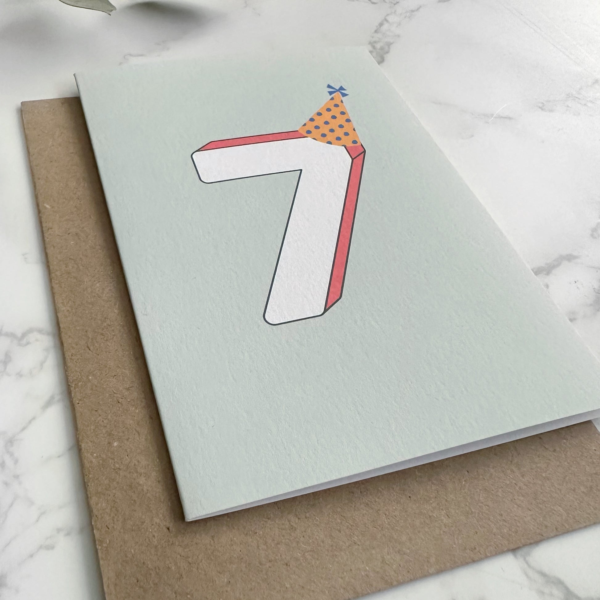 '7' Seventh Birthday greetings card! FREE UK shipping on all cards!