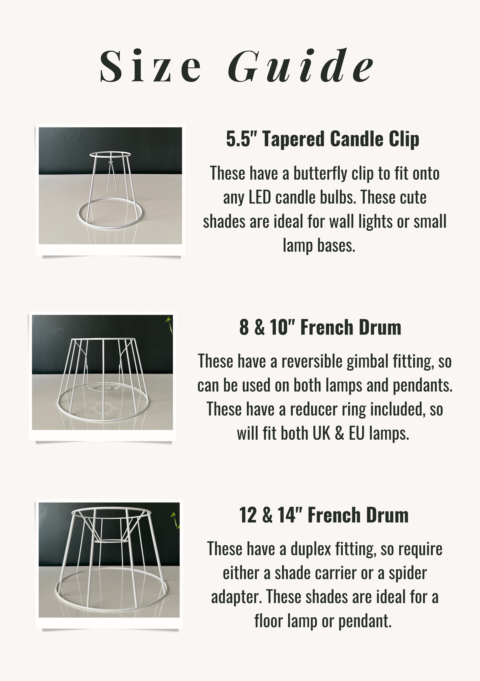 - 14" French Drum with duplex fitting (requires shade carrier/spider adapter) - 35.5 x 25.5 x 23cm