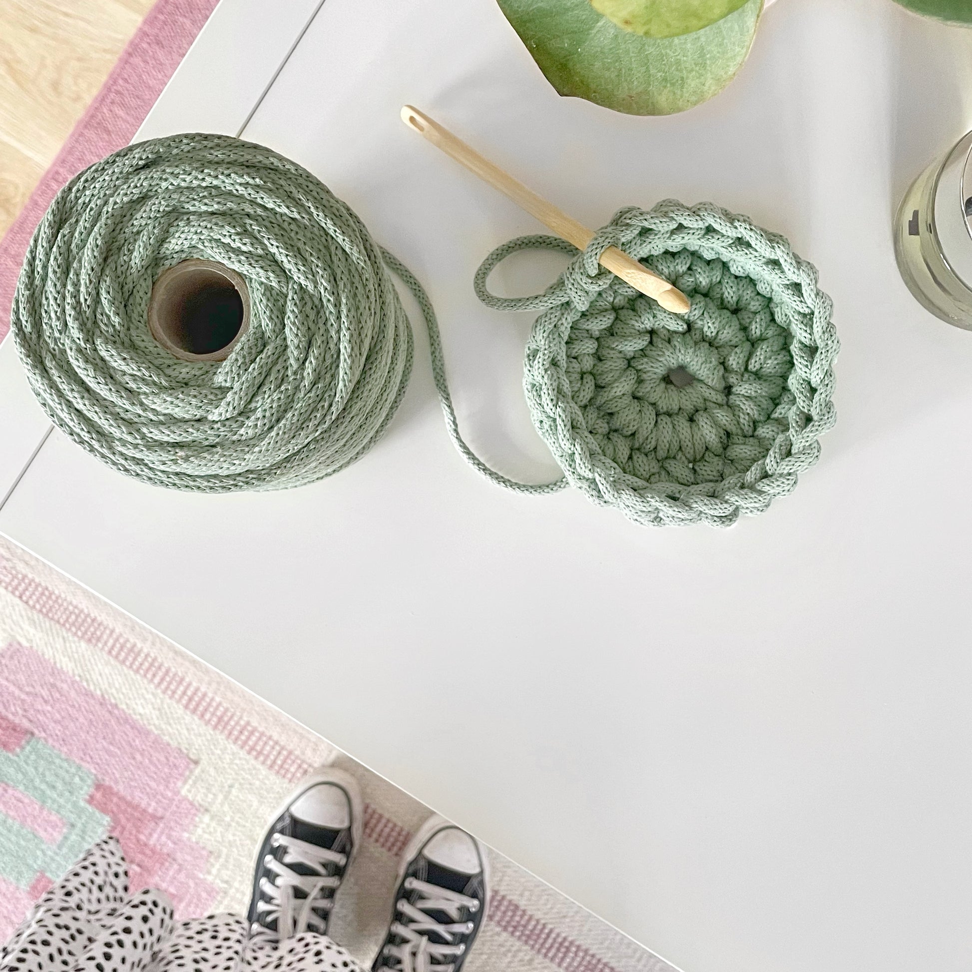 100% recycled cotton, braided cord with a 5mm diameter - perfect for macrame crafts, as well as weaving and wrapping those hoops for warping! 100m is approximately 0.5-0.6kg of cord.