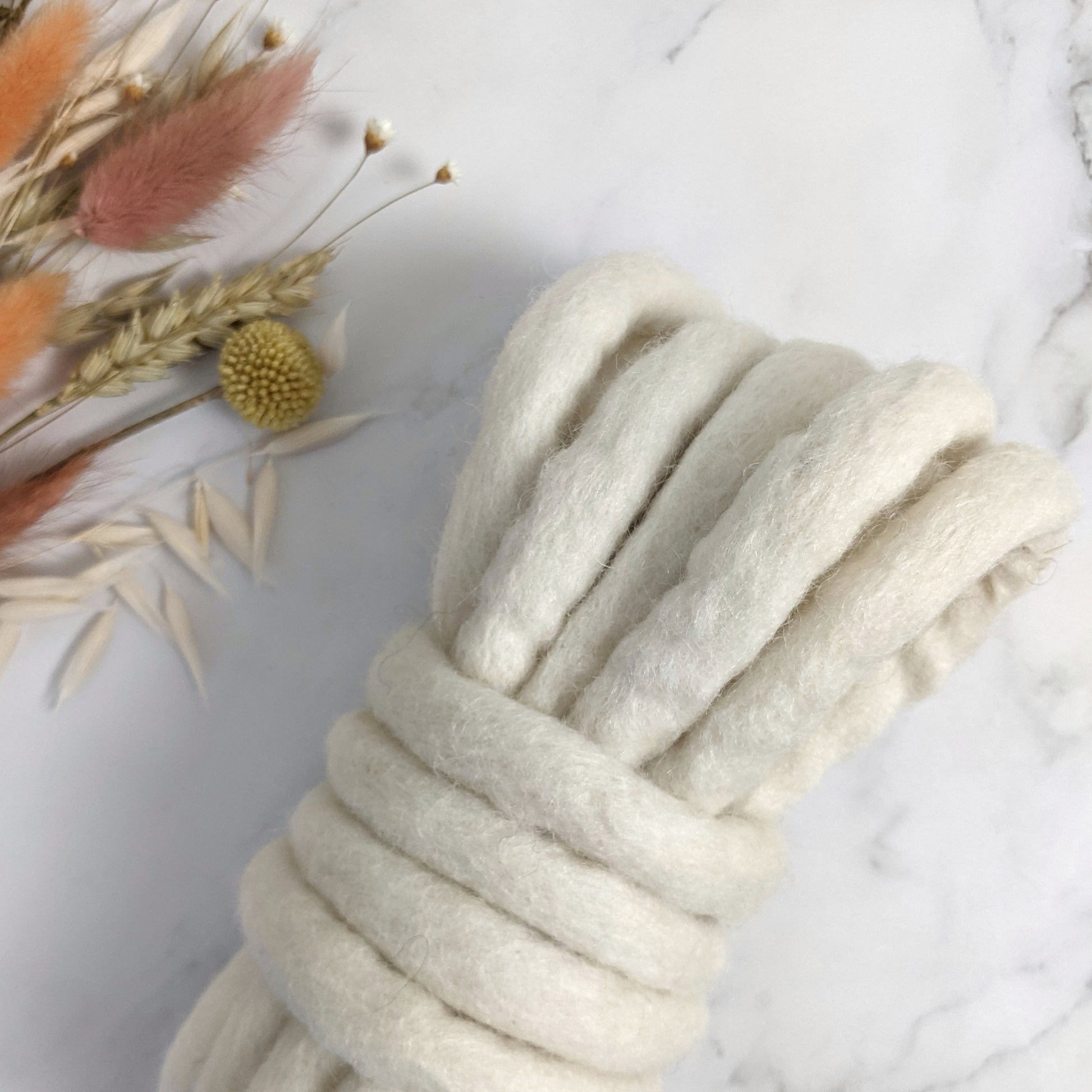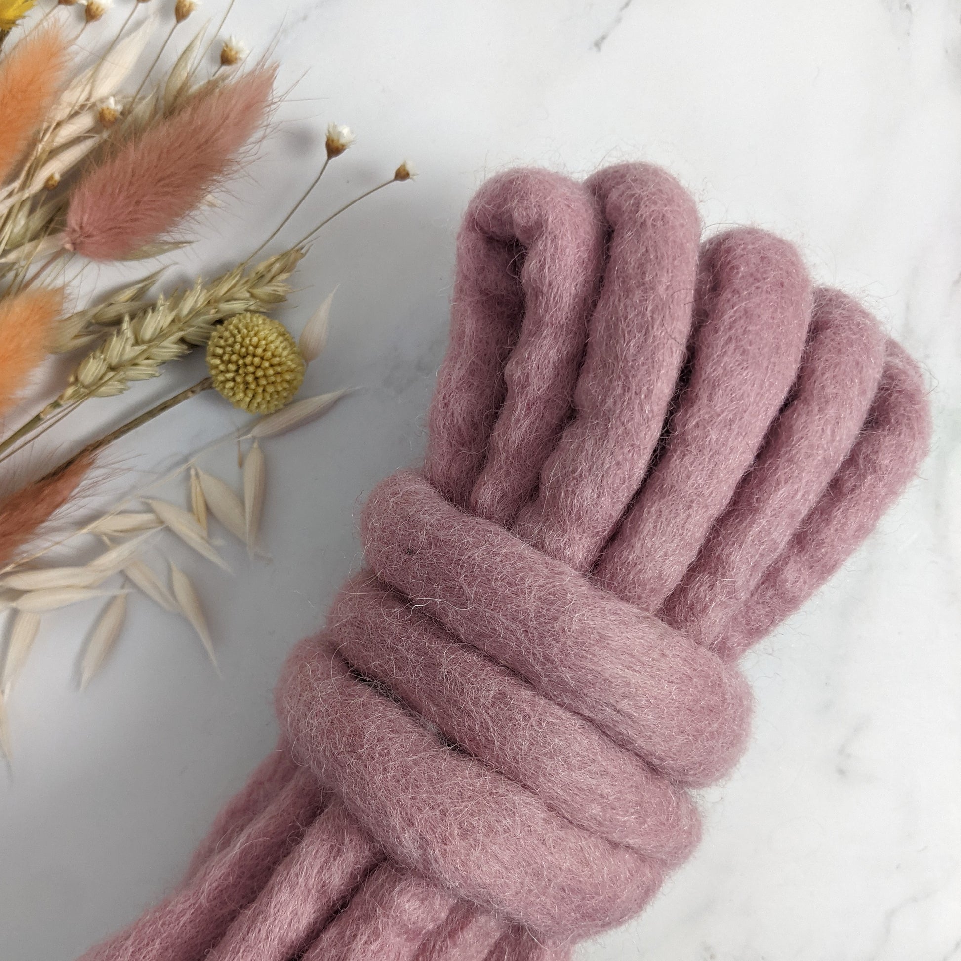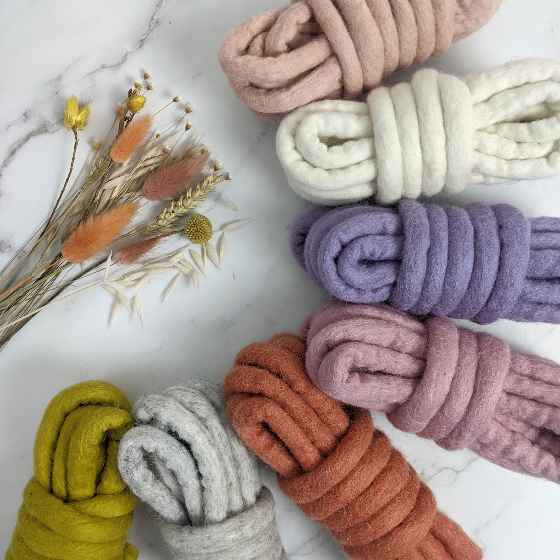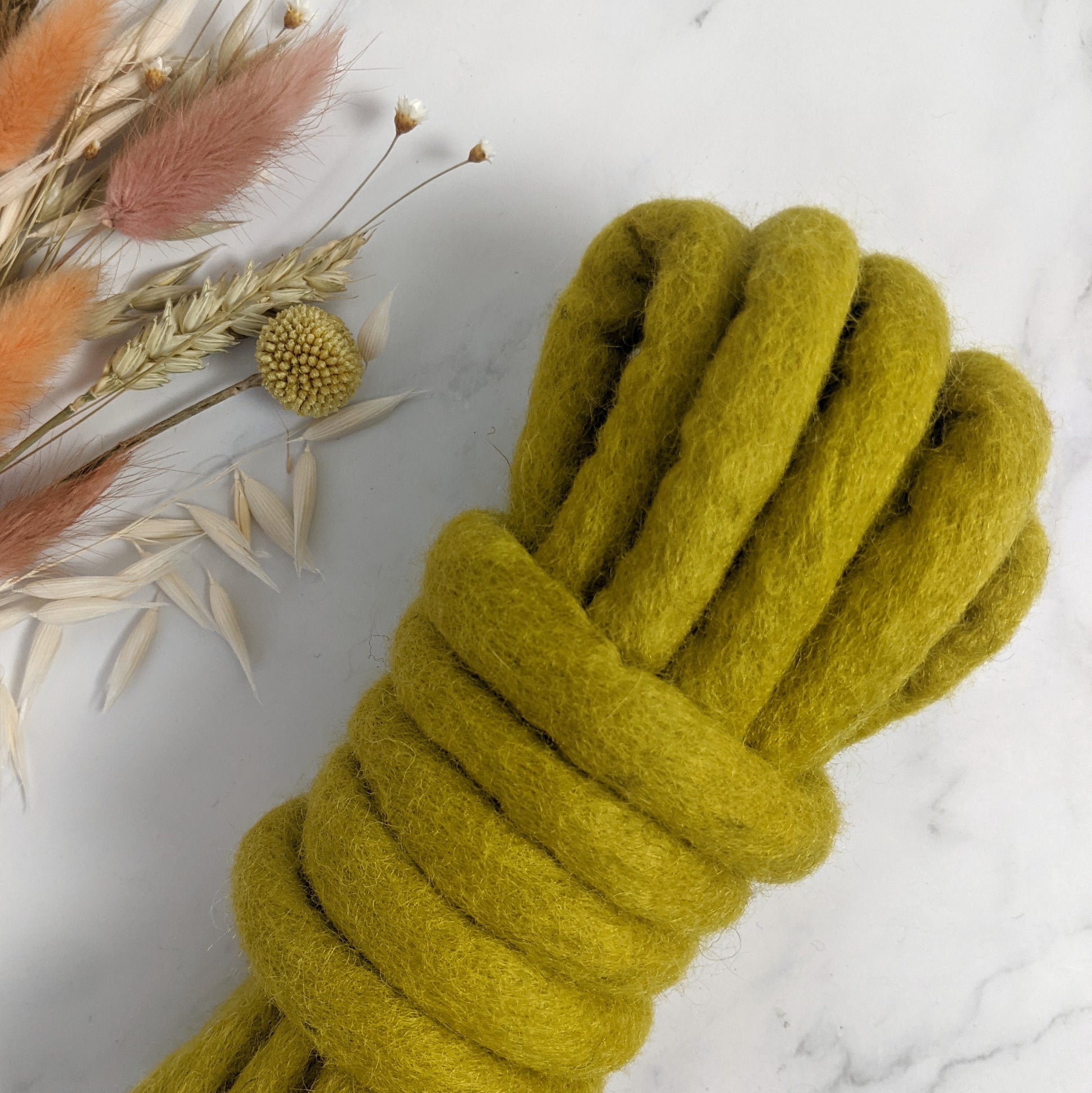 The yarn thickness of 15mm is approximate. The thickness varies due to the nature of hand-felting, meaning it has thicker and thinner sections throughout. Fun for for chunky arm knitting, chunky crochet, weaving and many more crafts!