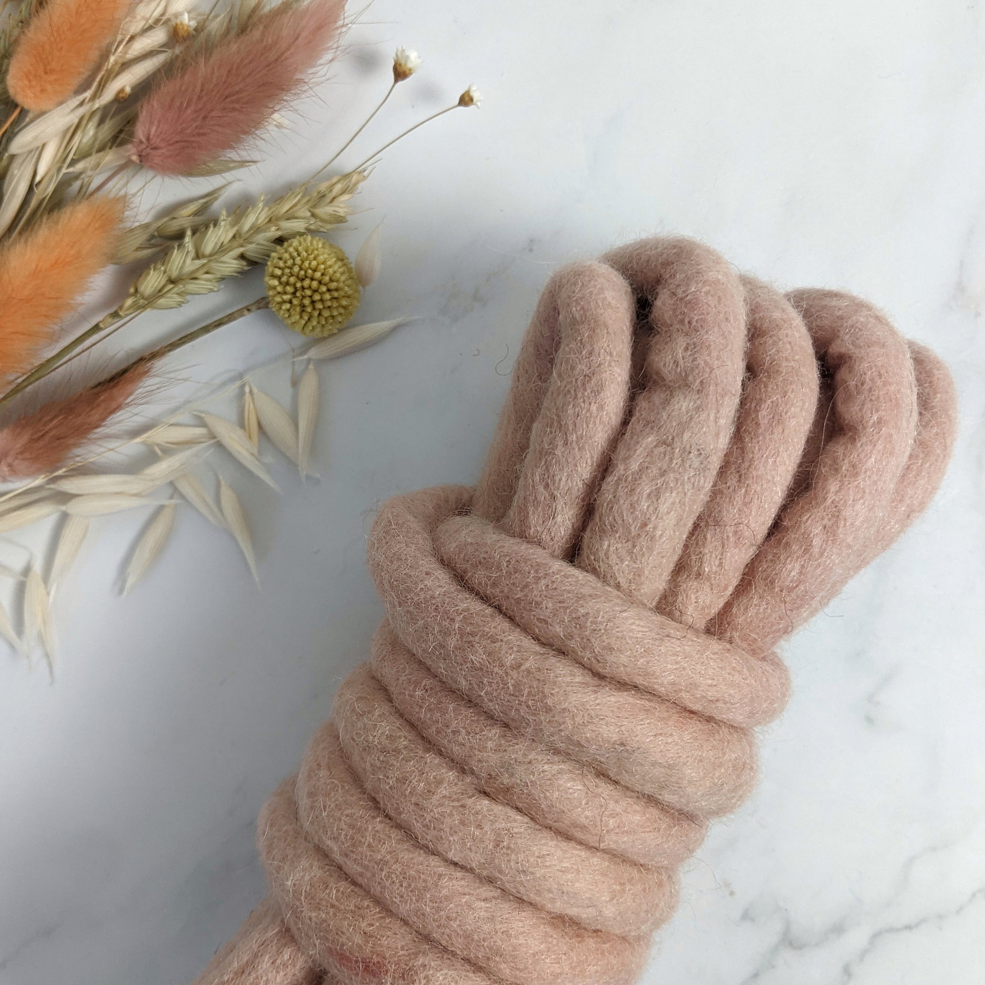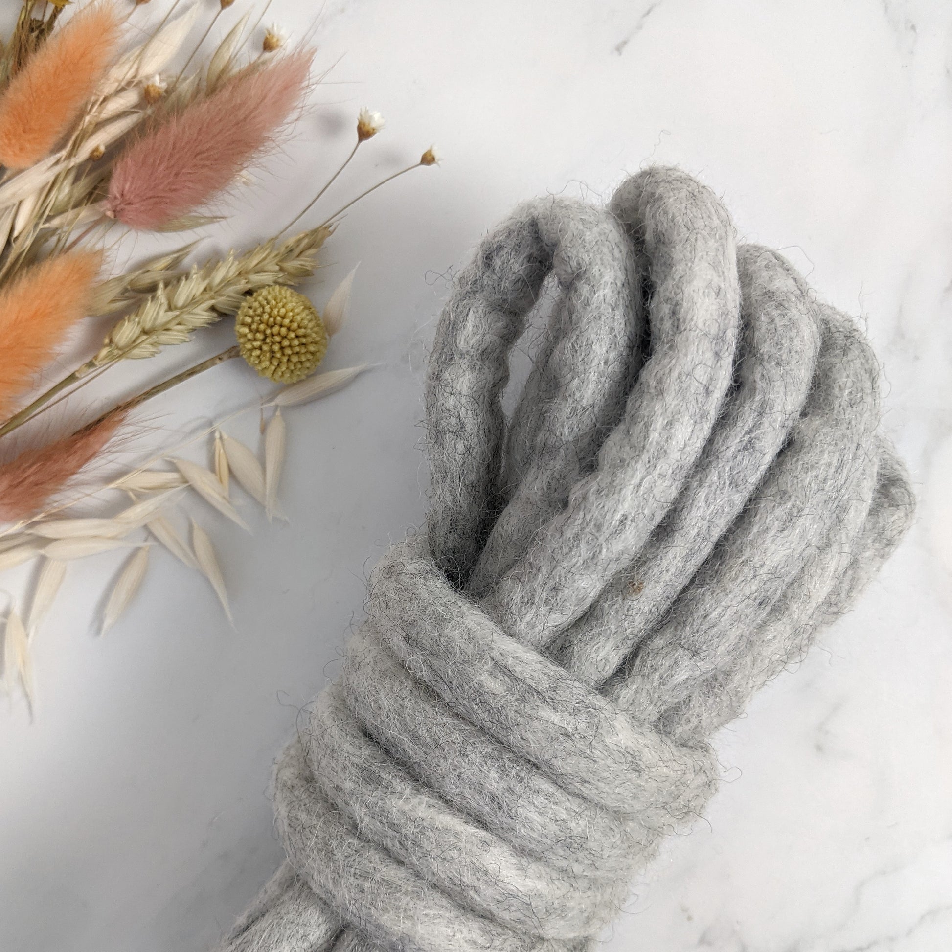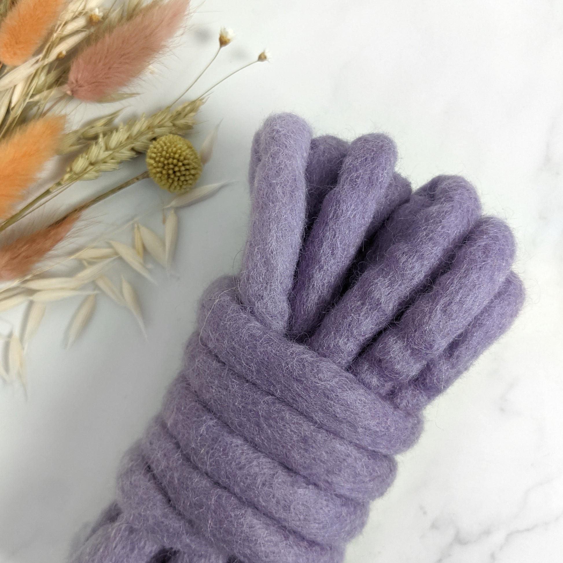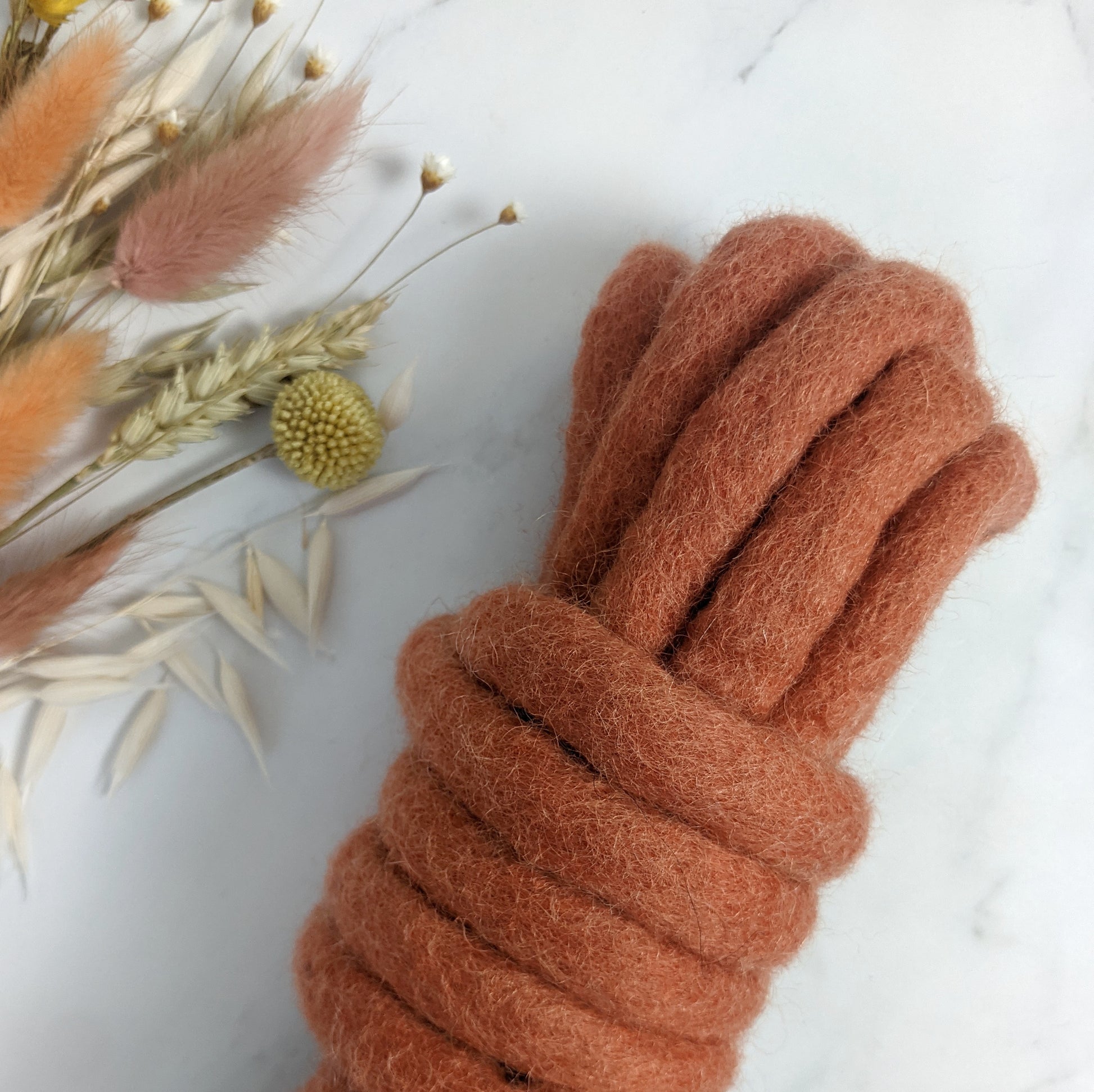 The yarn thickness of 15mm is approximate. The thickness varies due to the nature of hand-felting, meaning it has thicker and thinner sections throughout. Fun for for chunky arm knitting, chunky crochet, weaving and many more crafts!