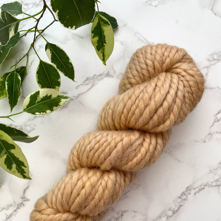 This soft, squishy, 2-ply, chunky yarn is made from 100% Merino Wool. The yarn is hand spun and hand dyed by craftswomen in remote Indian villages. This yarn is very lightly felted to create a unique texture, as well as having slightly thicker and thinner sections throughout, due to the hand spun nature of this yarn. Suitable for all fibre arts!