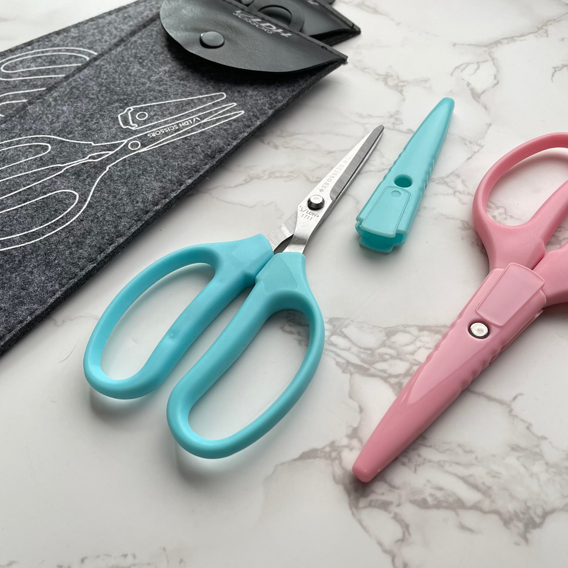 The blades are made from industrial stainless steel and come with a safety cap. These scissors are versatile and can be used on fabric, paper, and yarn, and are great for small, detailed work.