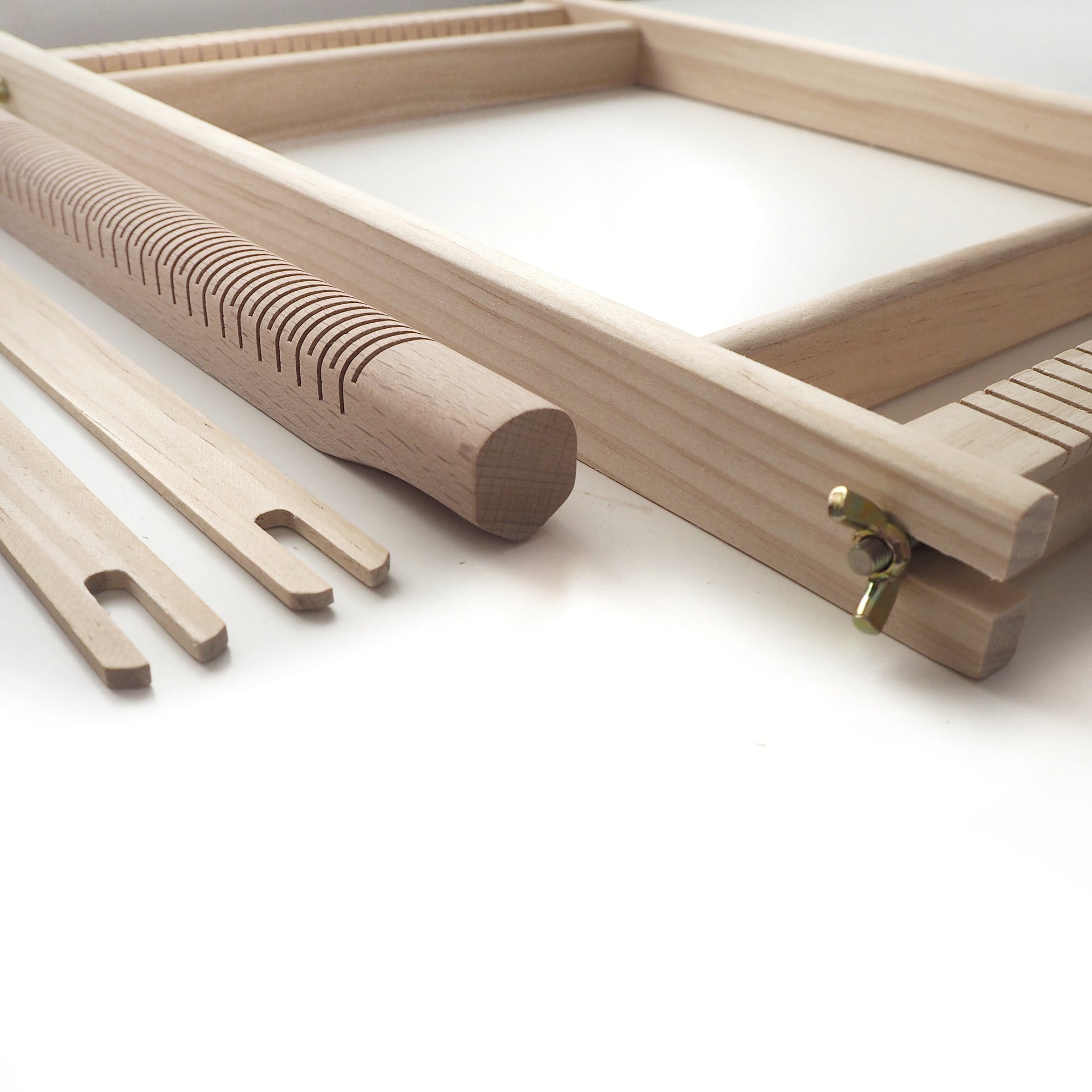 This weaving loom is 25m x 39cm, with a warp area of approximately 19cm x 38cm.