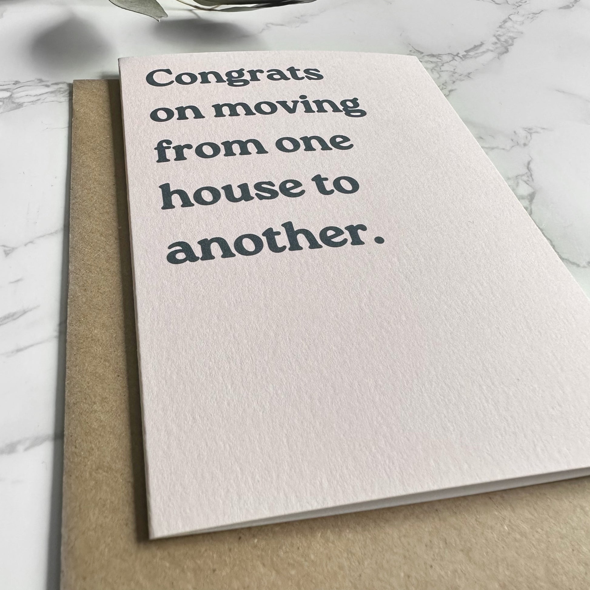 'Congrats on moving from one house to another.' New Home Greetings Card