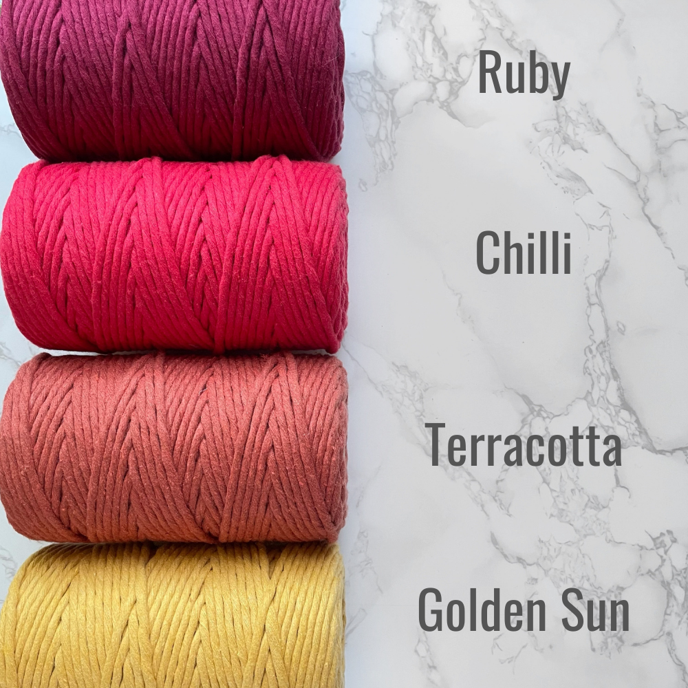 100% recycled cotton string, with a 5mm diameter. Perfect for macramé and weaving, but also wonderful for lots of other fibre related crafts! 100m is approximately 0.5-0.6kg of string.