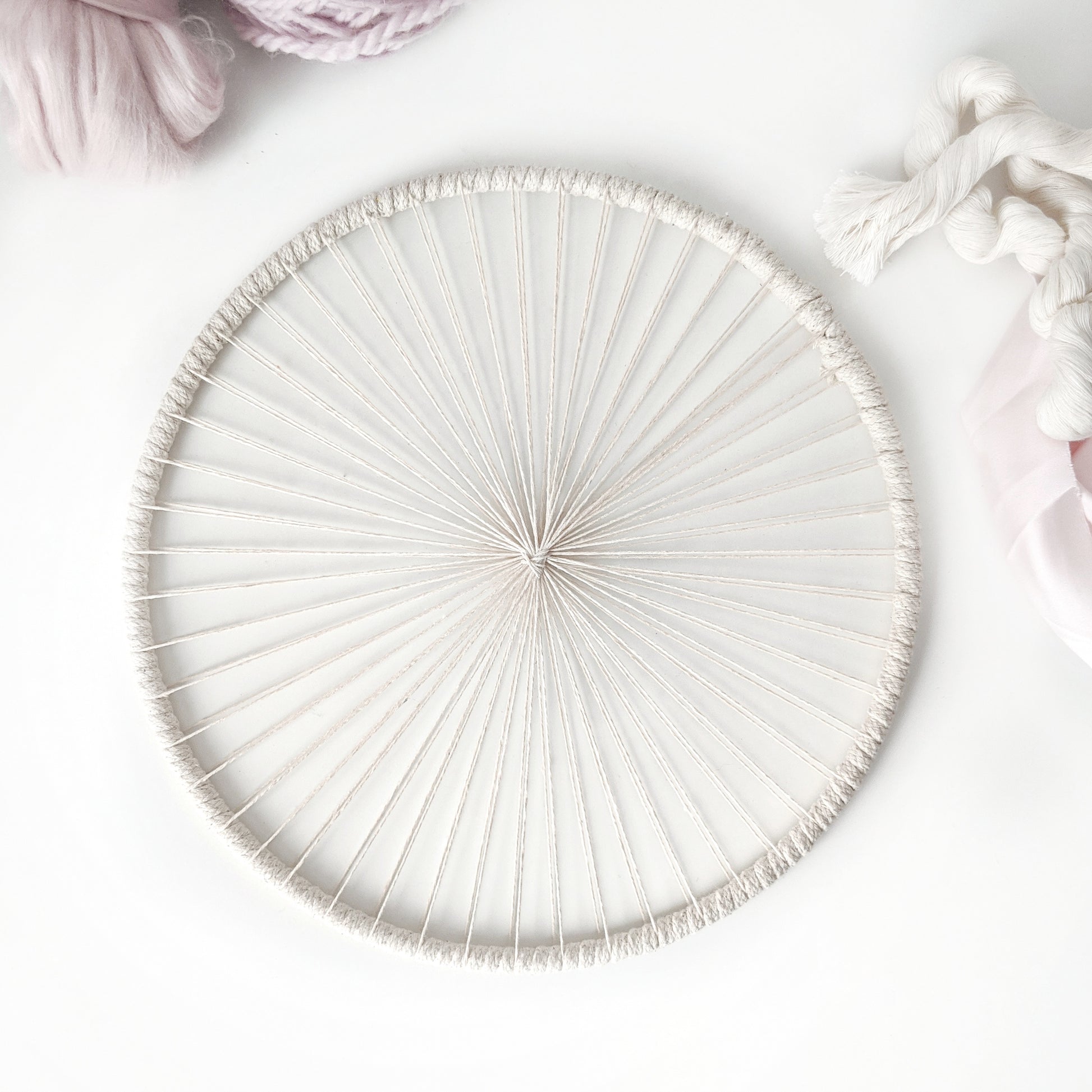 - Pre-wrapped and warped hoop, ready for instant weaving