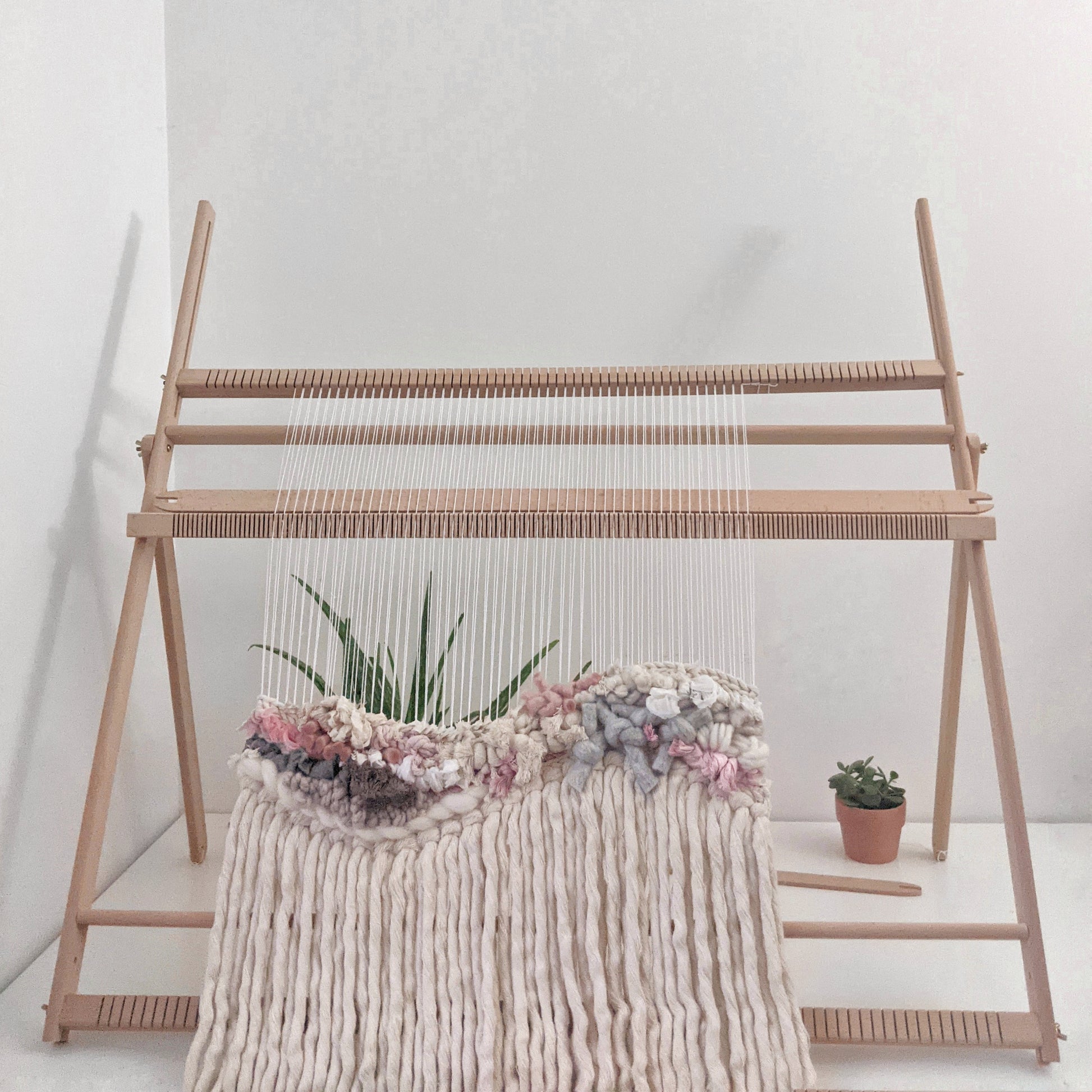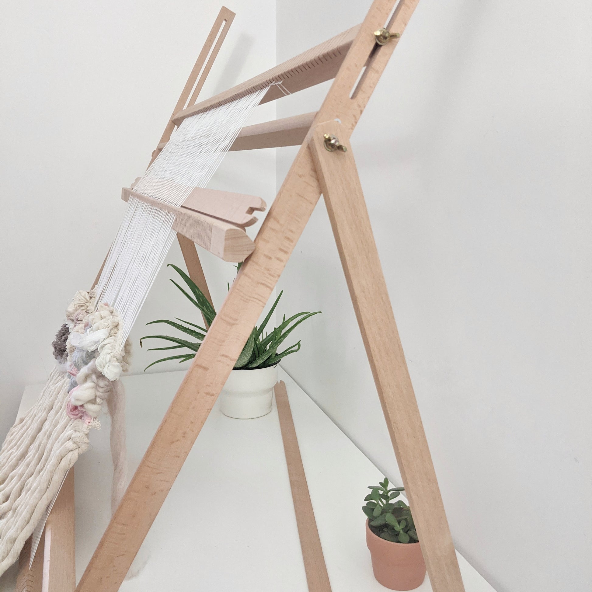 These XXL weaving looms have a stand and are 90cm height x 88cm width, with a warp area of approximately 80 height x 78.5cm width. Both the top and bottom bars of the loom are adjustable, which is ideal for tightening and loosening the tension of the warp when required. The top bar can also be moved higher or lower on the loom, depending on the height that you'd like for your weaving! It's a very user-friendly loom - you can create both small and extra large weavings with this loom! Assembly instructions are supplied with the loom.